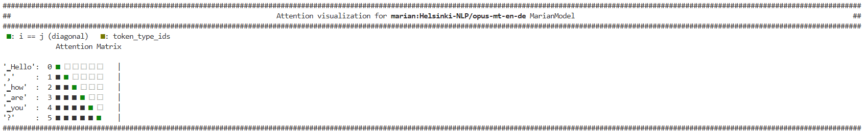 visualizer = AttentionMaskVisualizer("Helsinki-NLP/opus-mt-en-de")visualizer("Hello, how are you?")